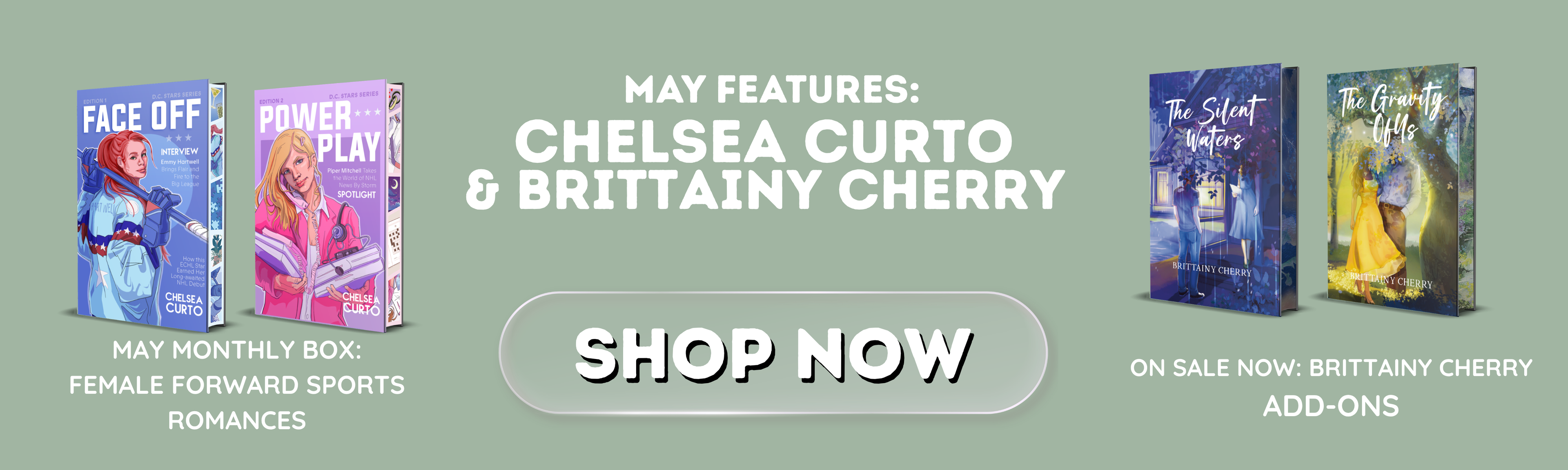 Two special edition, foiled hardcovers, encased in a beautiful foiled slipcase or with fun swag. Swoony and spicy contemporary romance at your doorstep once a month.
